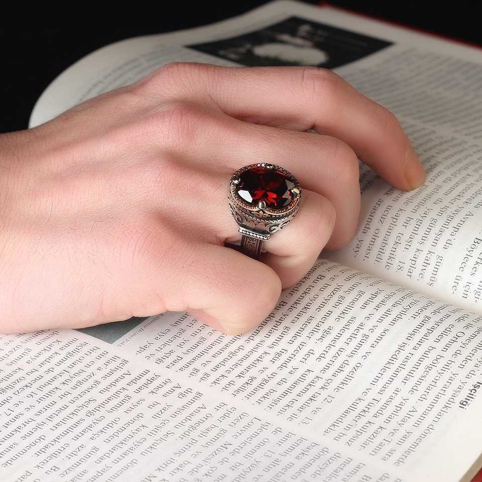 Traditional Motif Red Zircon Stone Men Ring Turkish 925 Silver Turkish Wholesale Silver Jewelry Turkish Handmade Ring