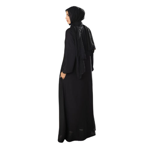 Traditional Muslim Modest Abaya Dress for Adults High Neck Flared Hem MAXI Length Satin Islamic Clothing Elastic Cuffed Sleeves