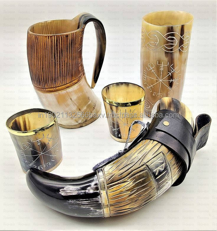 Gani Craft Impex Handmade Viking Drinking Horn High Quality Natural Horn in Vintage Design Good Color for Home Use