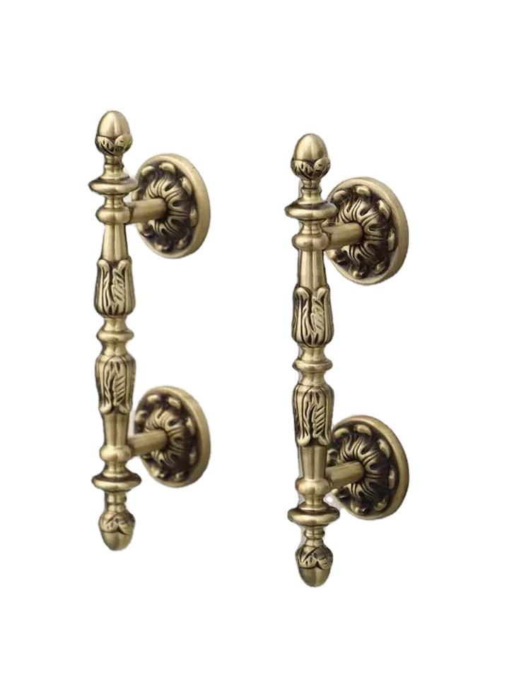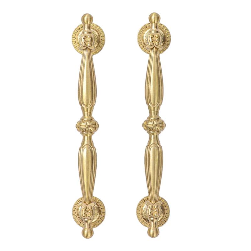 Traditional Ornate Brass Door Pull Handle with Polished Gold Finish, Strong Decorative Handle for Luxury Interiors