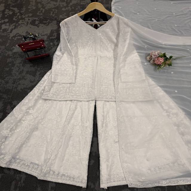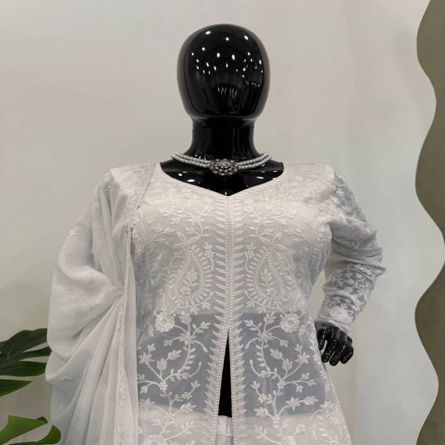 Traditional Plazo Suit for Women with Fine Thread Work, Comfortable Elastic Plazo, and Dupatta with Decorative Lace Border