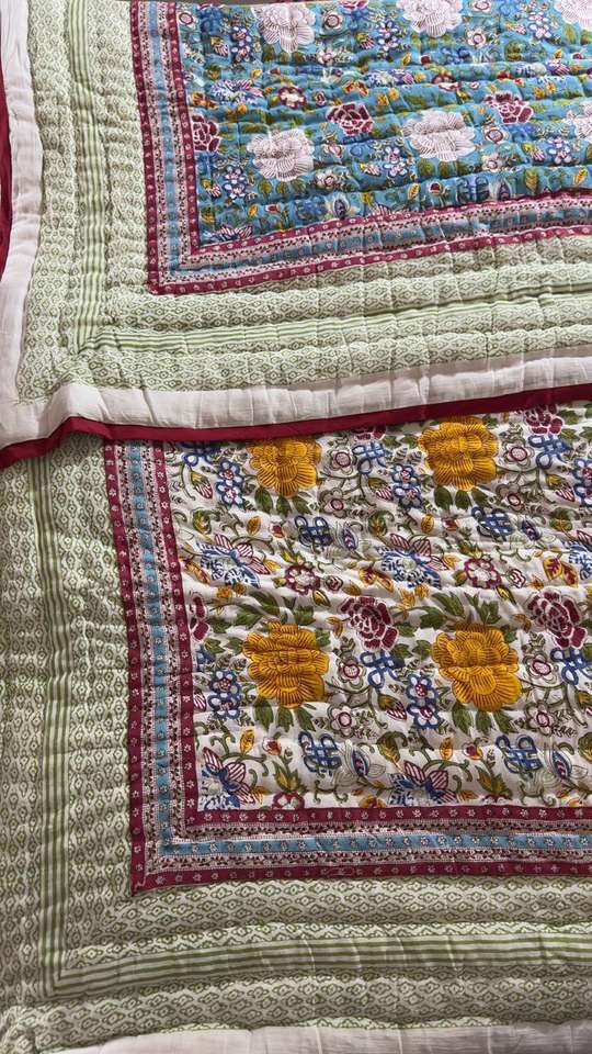 Traditional Print Quality Handmade Jaipuri Design Block Print Quilt Cotton Hand Block Printed Ethnic Design Quilt For Winter Use