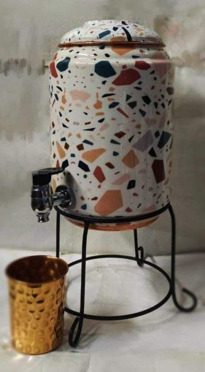 Traditional Printed Pure Copper Water Dispenser Better Digestive Performance Cooler Dispenser for Drink Water Tongue Cleaner