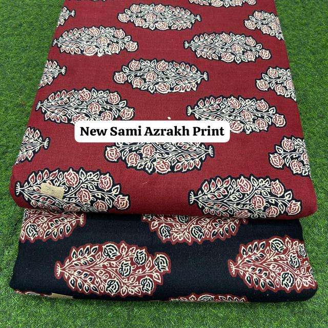 Traditional Sami Azrakh Print Soft Cotton Fabric Stylish Ethnic Design Suitable for Women Kurti Dress Stitching and Craft