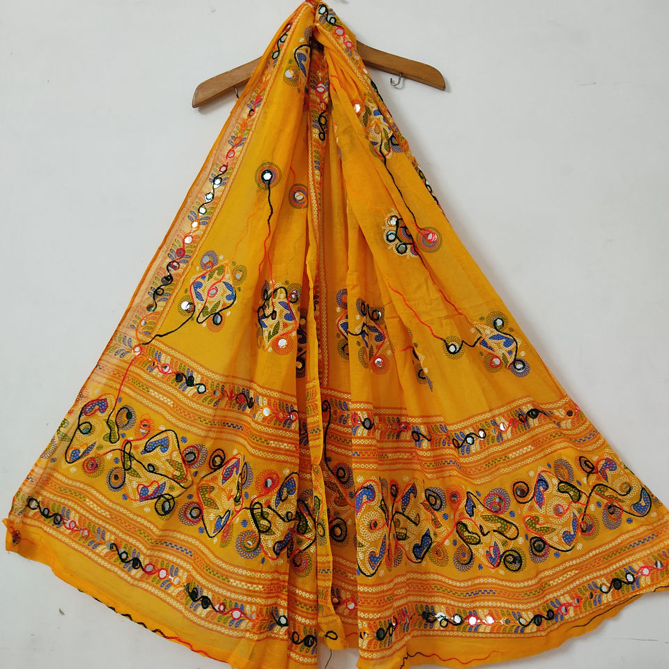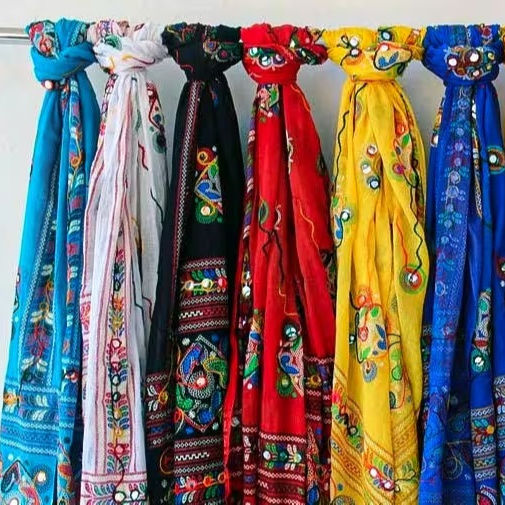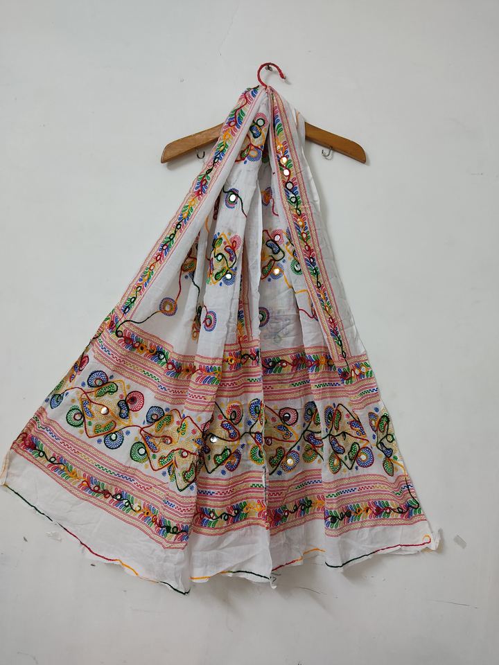 Traditional Scarf Cotton Mirror Embroidered Dupatta for Women and Girls Hijab Shawl Handmade Wrap