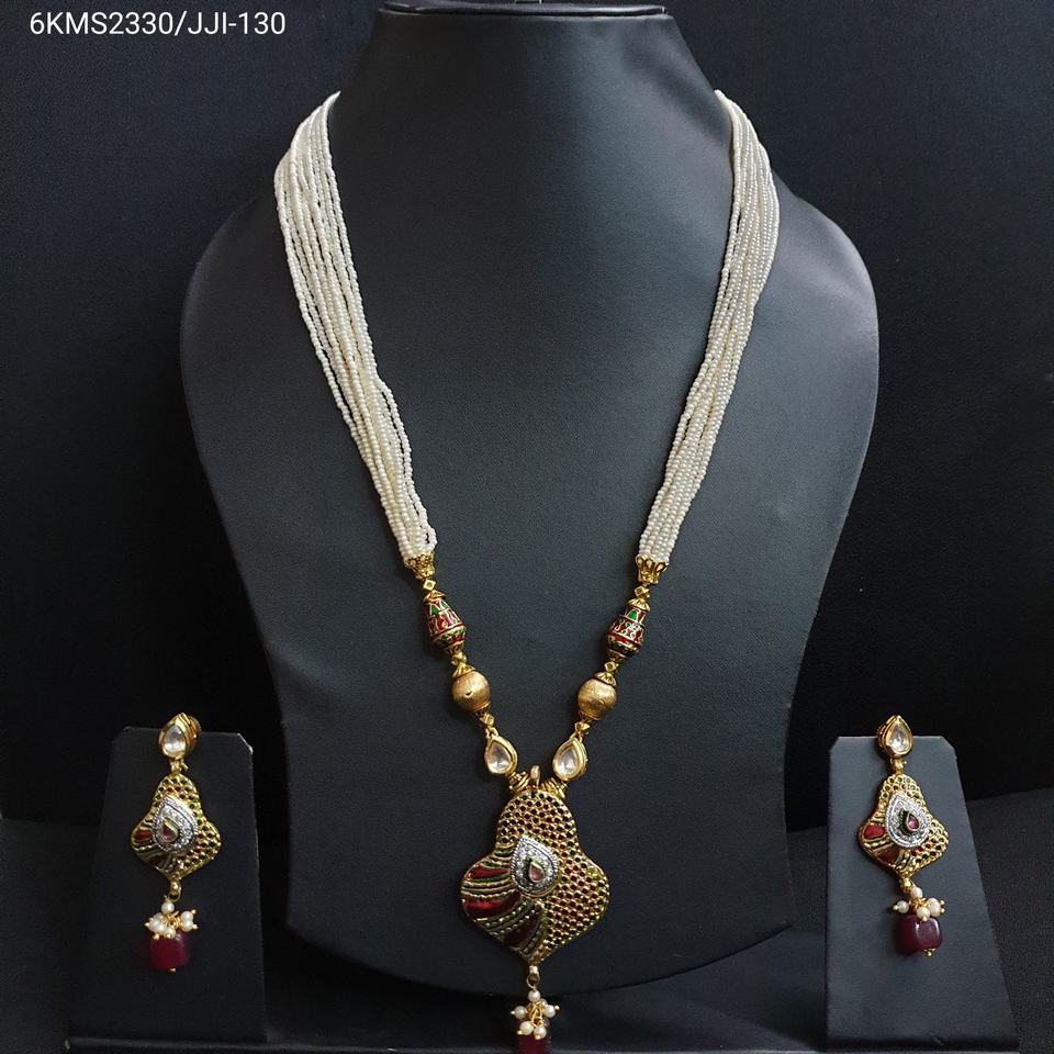 Traditional Seed Bead Maroon Meenakari Pendant Set With Earrings Ethnic Fashion Jewelry Indian Traditional Design For Women