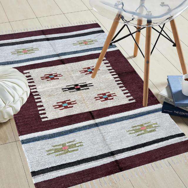 Traditional Silk Cotton Blend 2.5x4 Feet Dhurrie Carpet Rug Compact Size for Small Spaces Area Rugs & Sets
