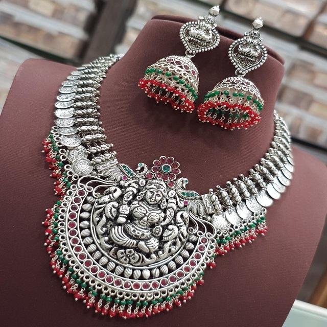 Traditional Silver Polish Premium Quality Exclusive Unique Design Necklace Set with Earrings Designer Wedding Wear For Women