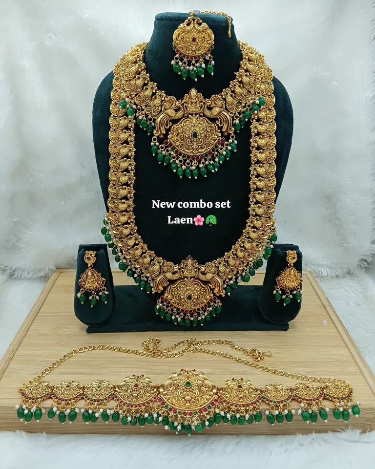 Products Name:Fancy Collection Gold Plated Kundan & Pearl Necklace Set