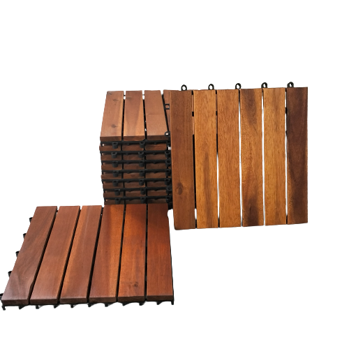 Traditional Style Acacia Wood Decking Tiles 6 Slats Square for Outdoor Parquet Flooring Made Vietnam Smooth Ready Export