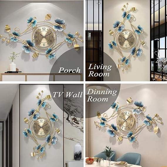 Traditional Style Modern Decorative Art Digital Glass Wall Clock Circular with Needle Display Butterfly art for Living Room