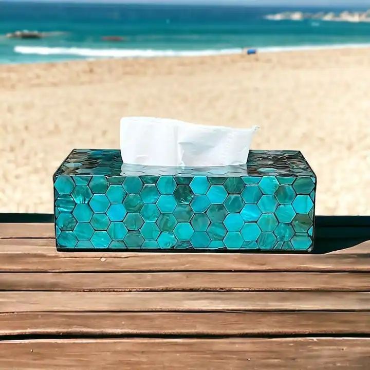 Traditional Style Mother of Pearl Tissue Holder and Napkin Box Wood Table Decor for Living Rooms for Home Storage