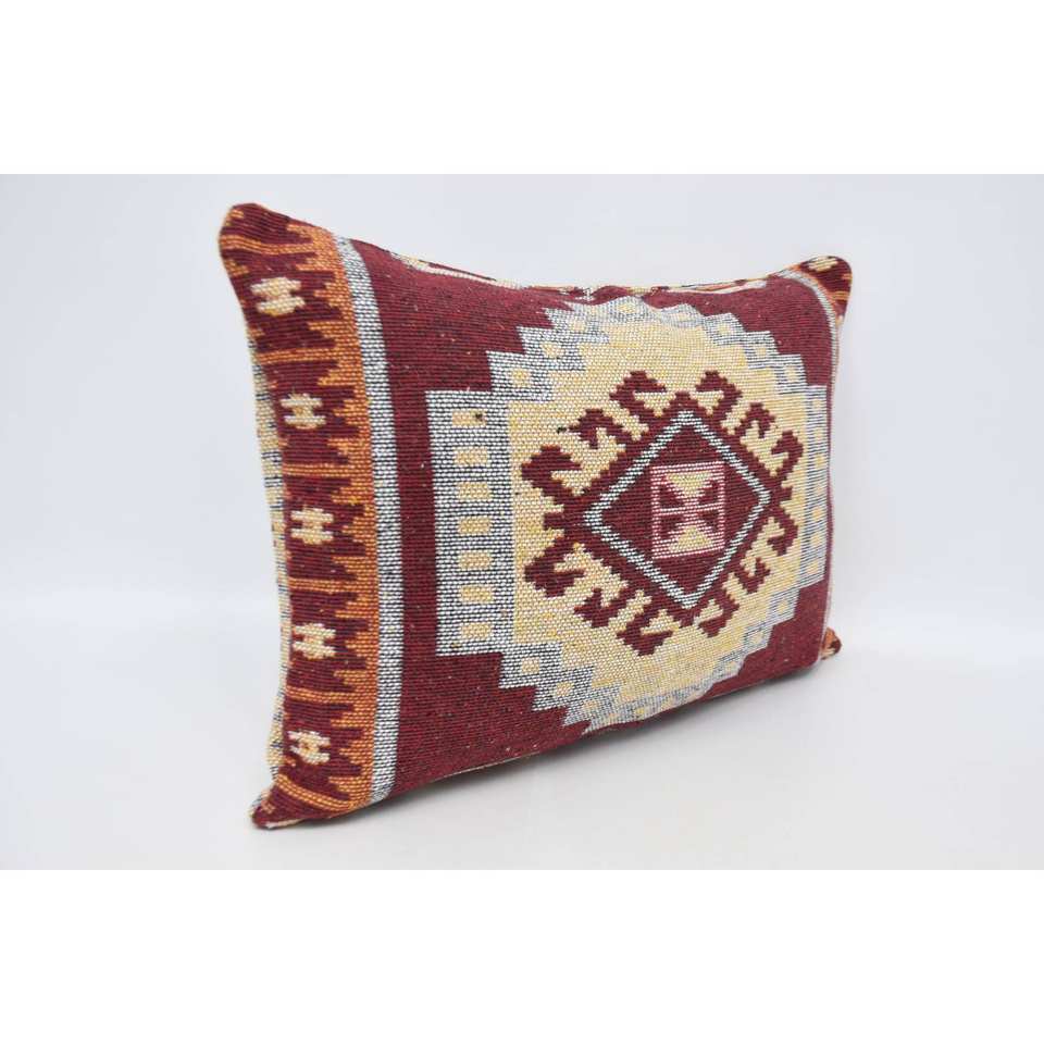 Traditional Style Red Wool Pillow 20x28 Inch with Geometric Vintage Embroidered Patterns Luxury Fluffy Design for Living Room