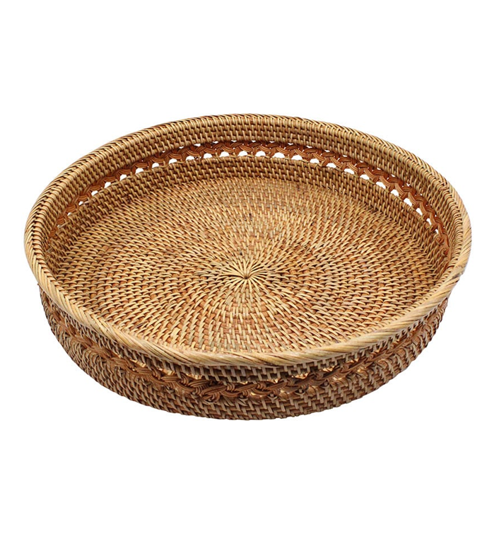 Traditional Style Round Rattan Ottoman Table Tray with Customizable Logo & Size Manufacture Supplier With Wholesale