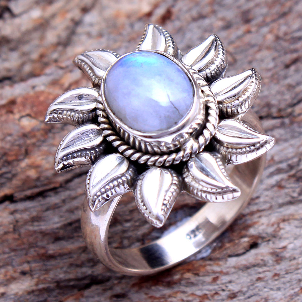 Traditional Sun Design 925 Sterling Silver Labadorite Moonstone Turquoise Gemstone Ring Weddings Engagements Gifts Set Inlaid