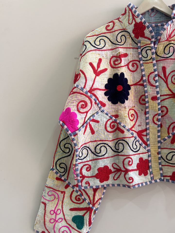 Traditional Suzani Embroidered Kantha Quilted Handmade Vintage Boho Jacket