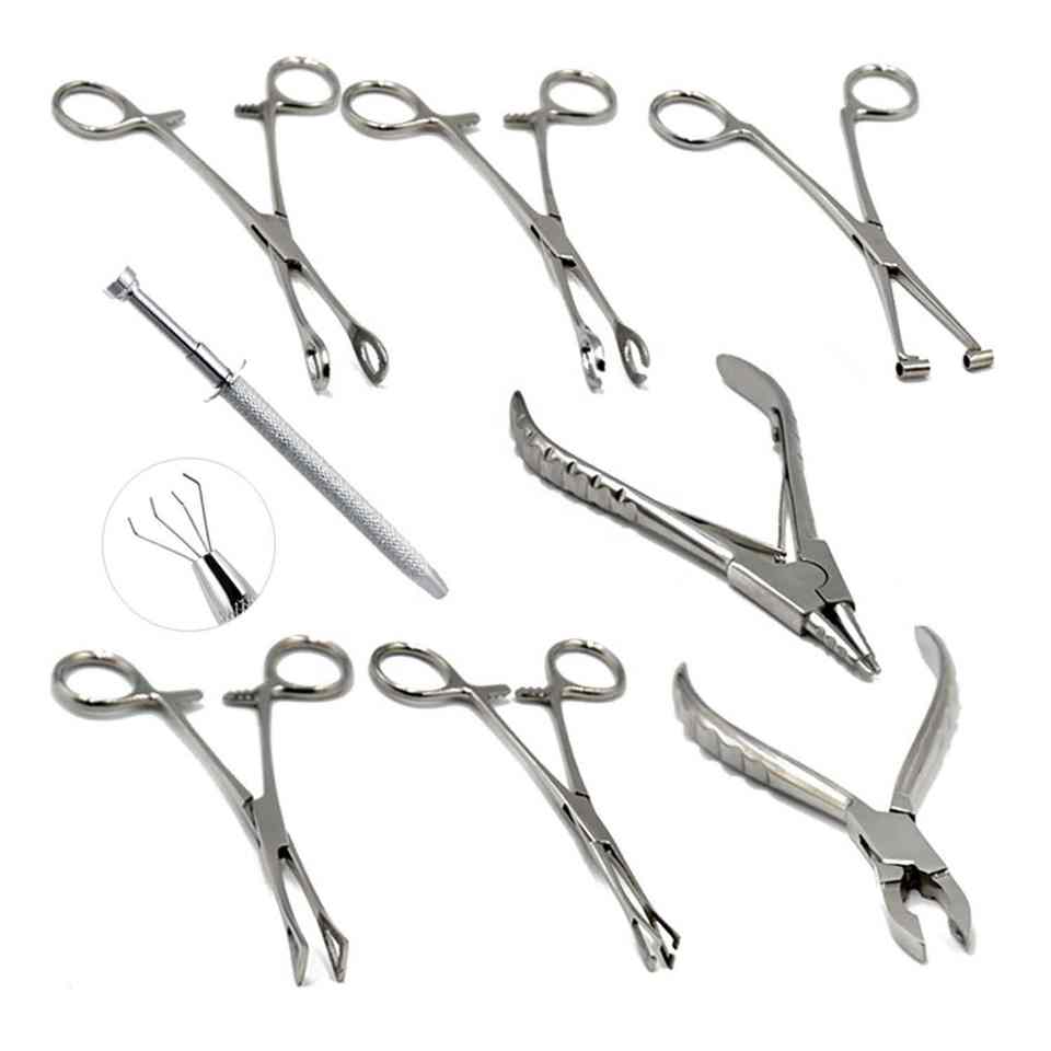 Traditional Tattoo Kit 5-Piece Stainless Steel Body Piercing Manual Forceps Clamp Ear Lip Tongue Clip Surgical Instrument
