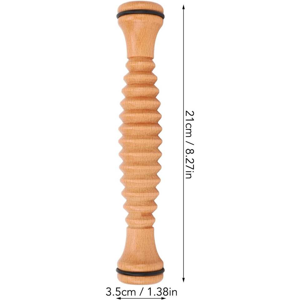 Traditional Thai Brown Wooden Roller Foot Leg Relaxation Fascia Massage Stick Hand-Cranked Tool Wireless Remote Foot Massager