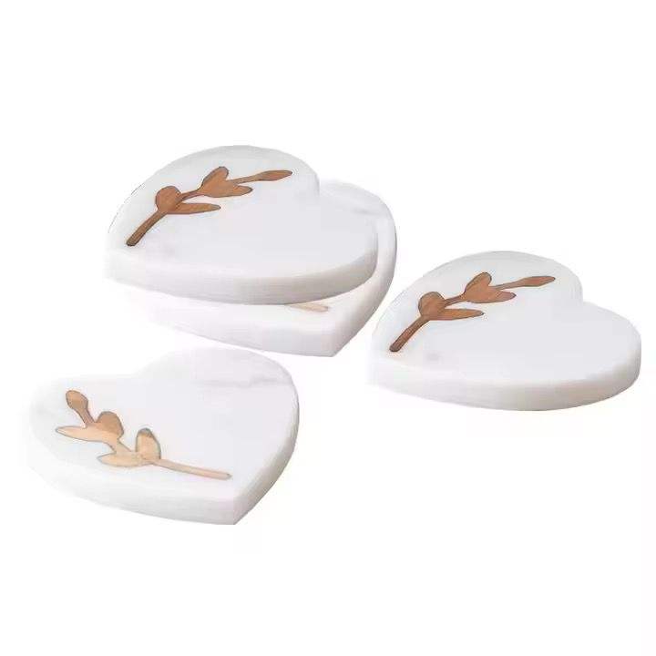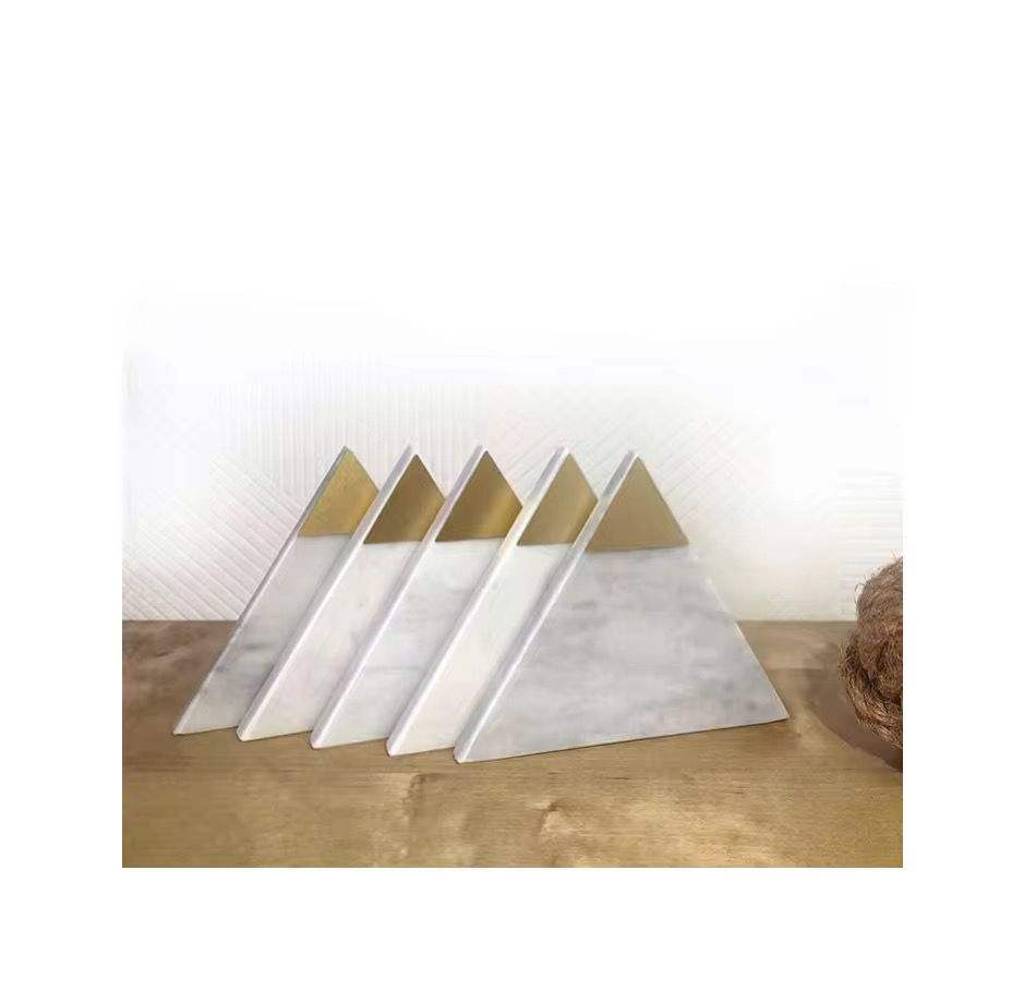 Traditional Triangle Shape Marble and Brass Coaster Tea Wine Beer Set Cup Mat Holder Drinks Top Quality Sale