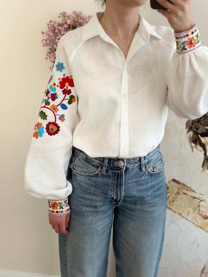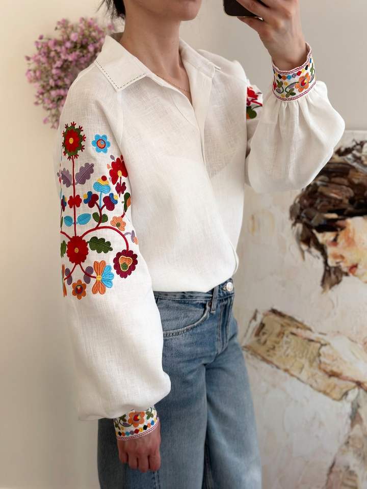 Traditional Ukrainian Yavorivska White Linen Blouse with Stunning Floral Embroidery Handmade Cultural Top Natural Superb Fabric