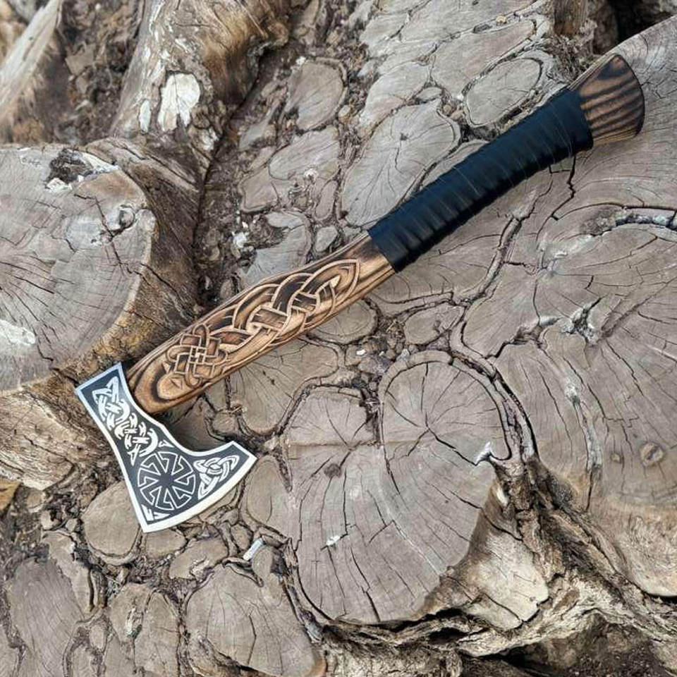 Traditional Industrial Grade Viking Axe Inspired by Norse Culture with Carbon Steel Blade and Handcrafted Wooden Handle