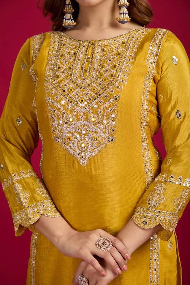 Product Name:Chinon Silk Thread Embroidery Top & Bottom With Dupatta