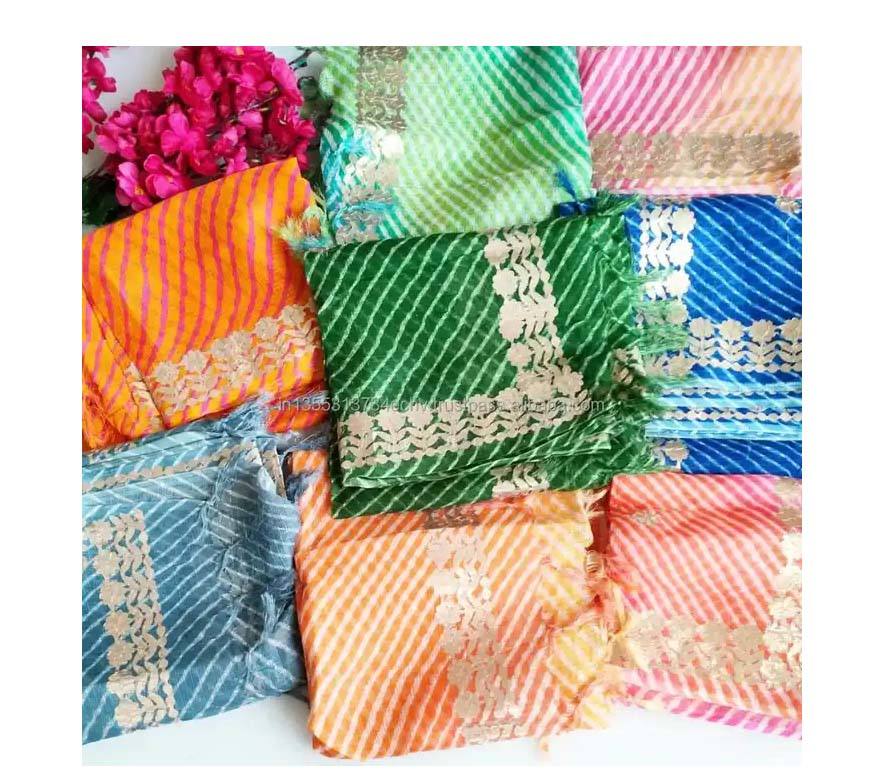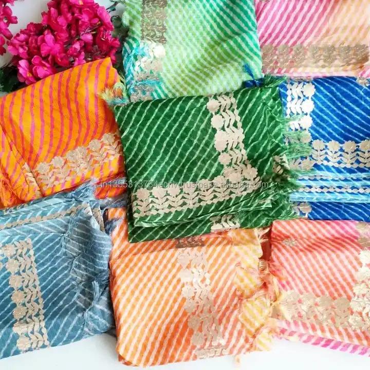 Traditional Women's Ethnic Cotton and Silk Dupatta with Long Lahariya Gota Flower Pattern Solid Party Scarf