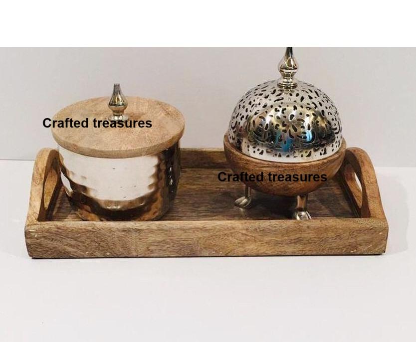 Traditional Wood Incense Burner With Brass Holder Storage Organizer Incense Holder Mubakhar Home Office Home Decor At Best Price