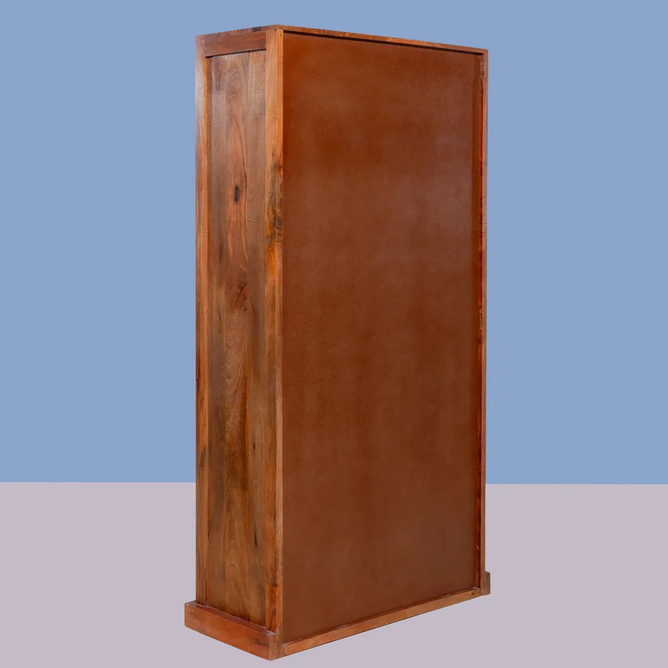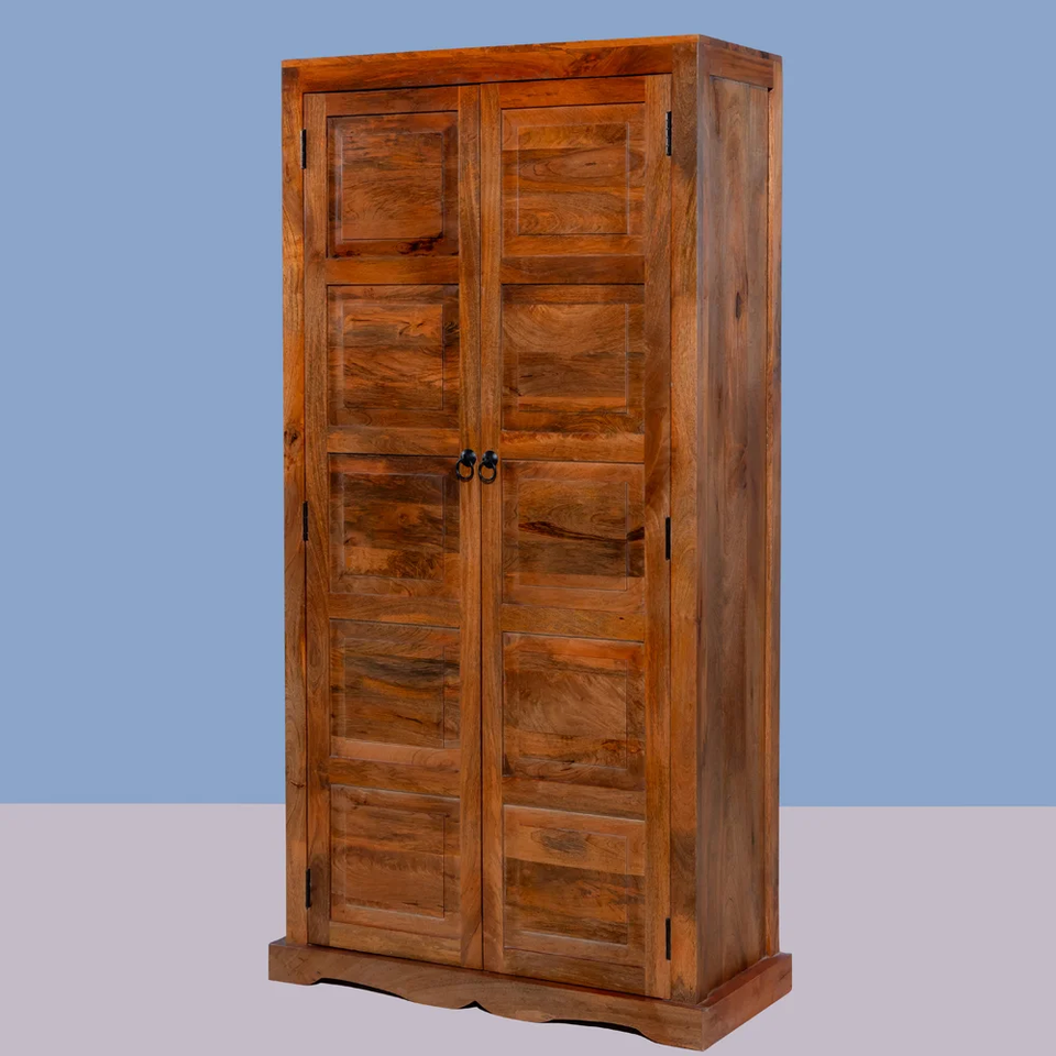 Traditional Wooden Almirah Sand Honey Finish Elegant Brass Handles Extendable Wardrobe for Timeless Appeal Schools Hospitals