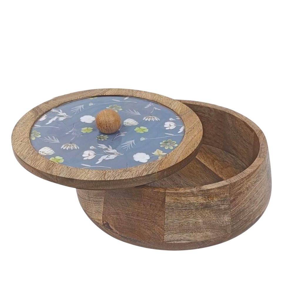Wooden Casserole With Floral Print