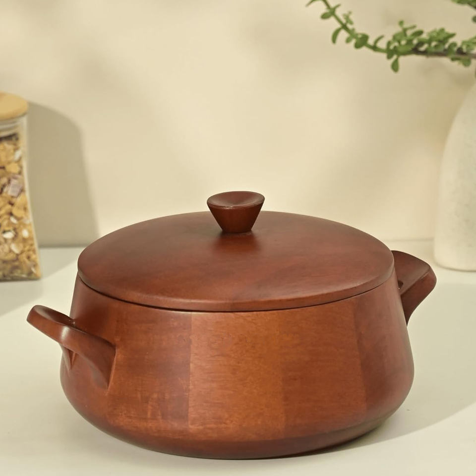 Traditional Wooden Hotpot with Lid Perfect Design Handcrafted Wood Pot Ideal for Serving & Storing Hot Meals in an Elegant Way