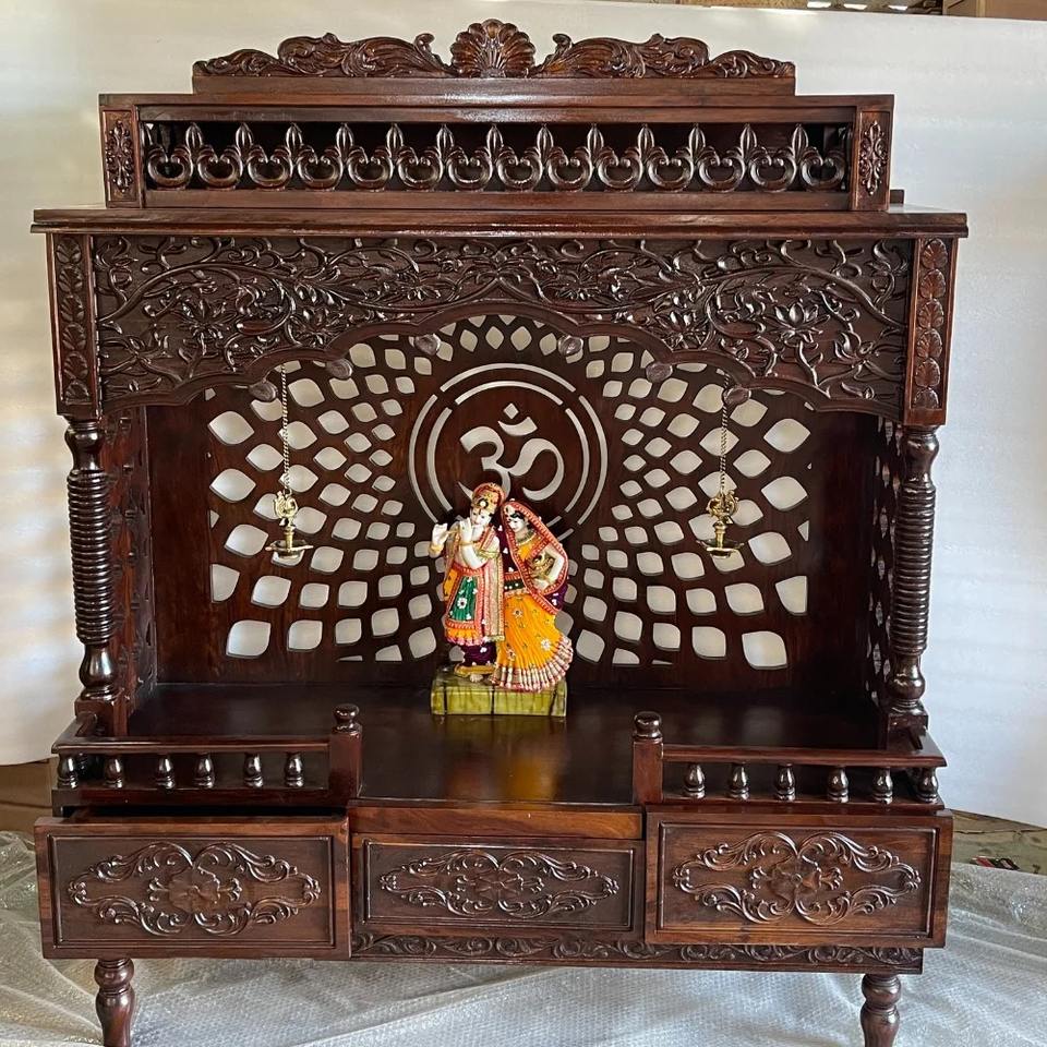 Traditional Wooden Mandir for Home with Dome Design Premium Home Temple with Peacock Carving Wooden Temple for Traditional Homes