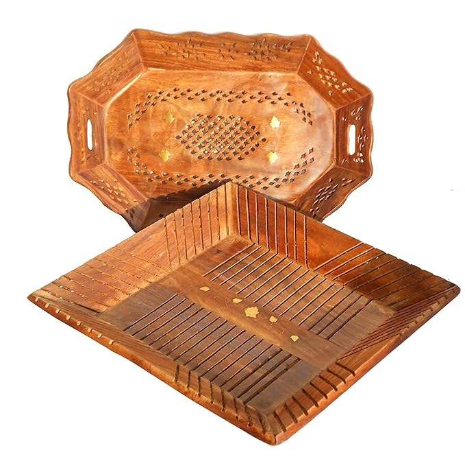 Traditional Wooden Serving Tray For Wedding Gifts Artistic Wooden Serving Tray For Festive Occasions from CRAFT ZONE EXPORT