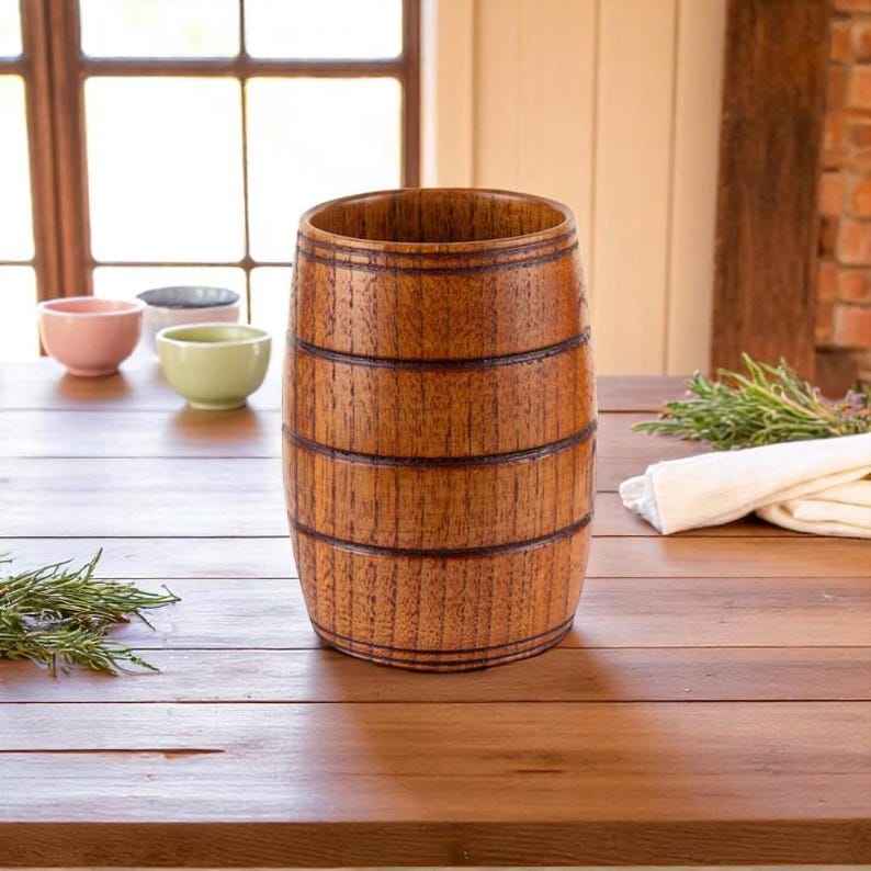 Traditional Wooden Tea Cup Handcrafted Solid Natural Wood Reusable Tea Coffee Mug Sustainable Drinkware Product