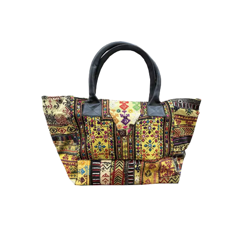 Traditional Zari Work Embroidered Banjara Shoulder Bag Handmade Ethnic Casual Bohemian Tote Women's Eco-friendly Canvas Zipper