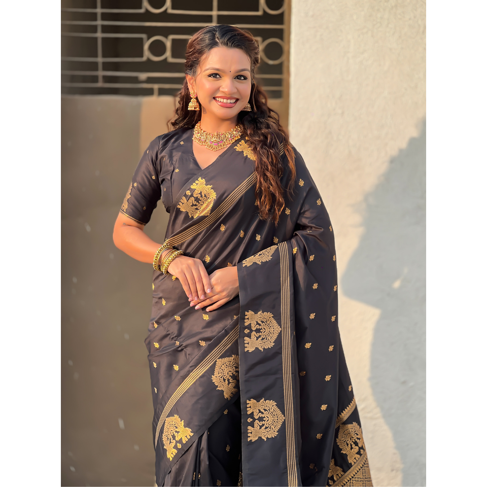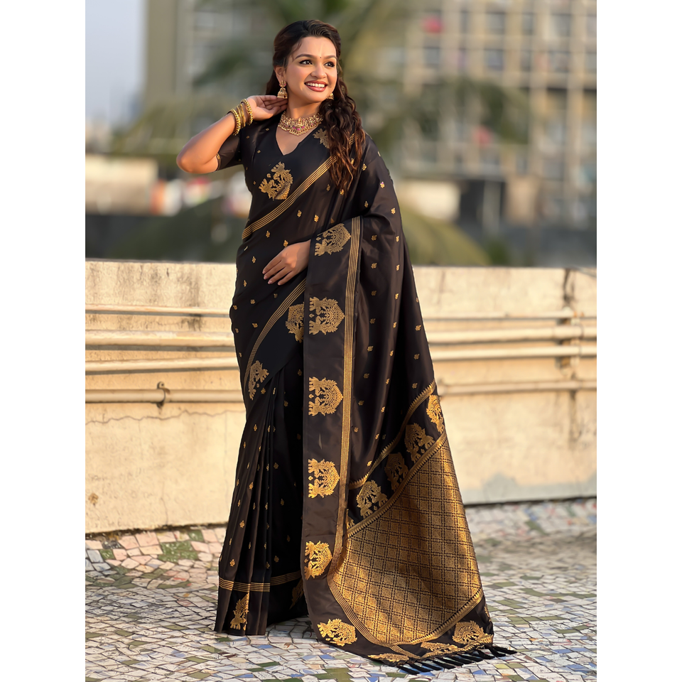 Traditional Zari Woven Saree Black Soft Silk Indian & Pakistani Clothing
