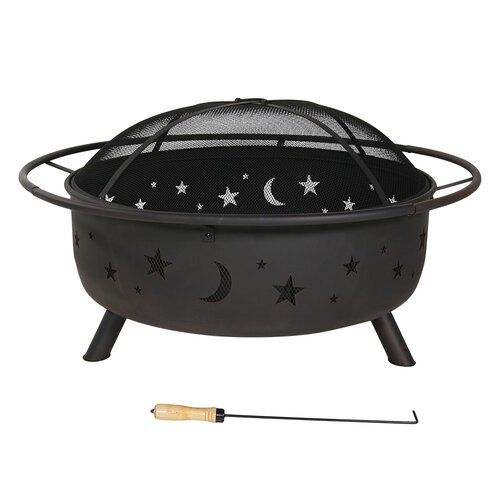 Traditional fire pit bowl in iron with rustic forged finish and wide burn area ideal for garden night parties