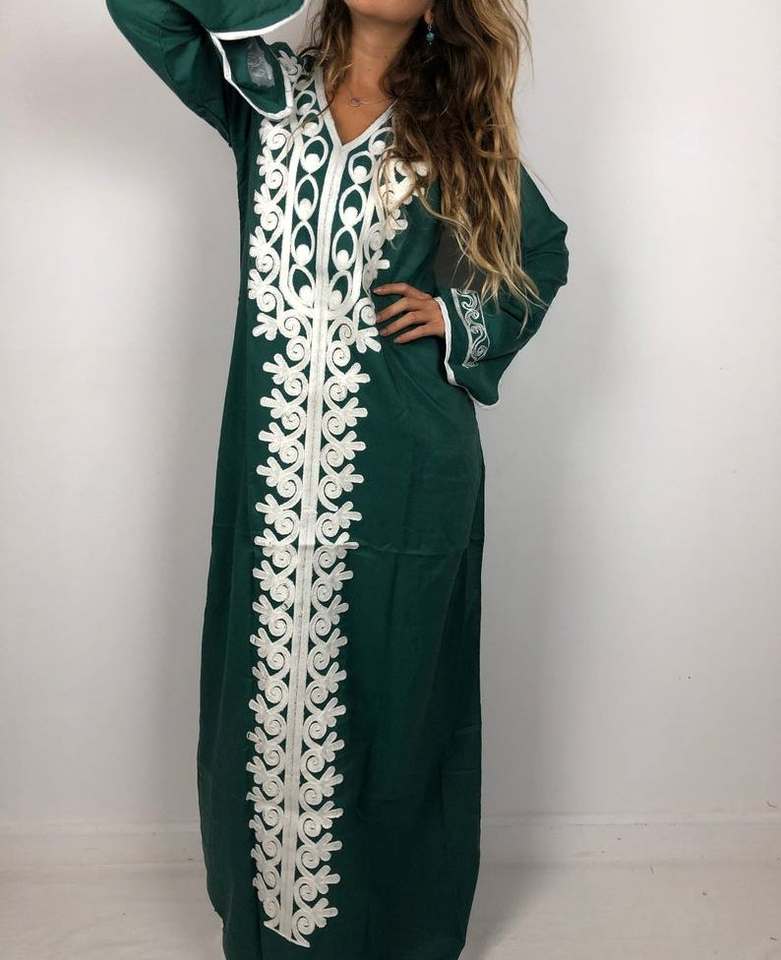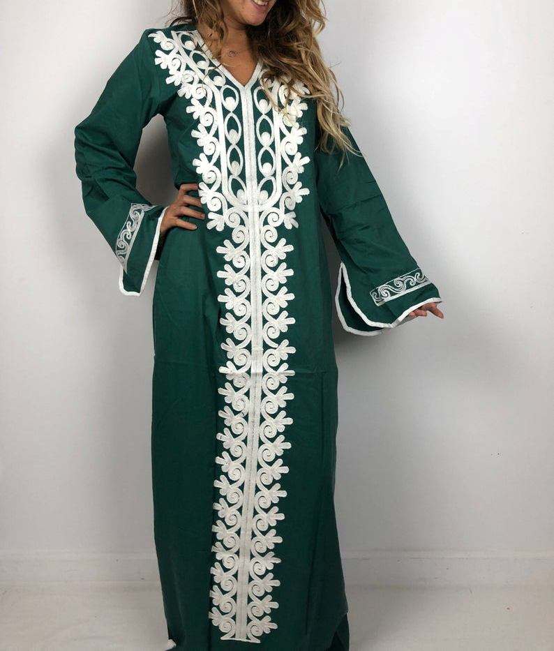 Traditional Mexican Style Elegant Summer Satin Dress Front Flower Embroidery V-Neck Long Sleeves Woven Floral Pattern Zipper
