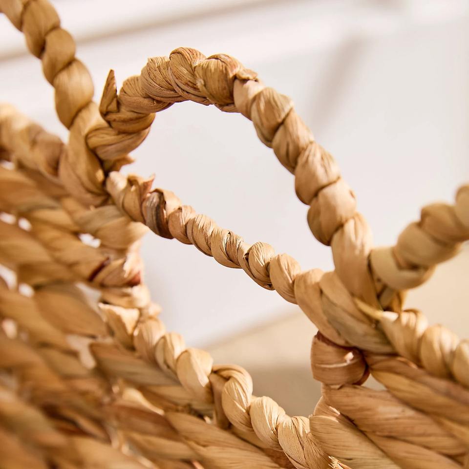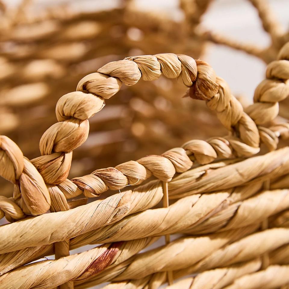 Traditional woven water hyacinth basket with a wavy rim