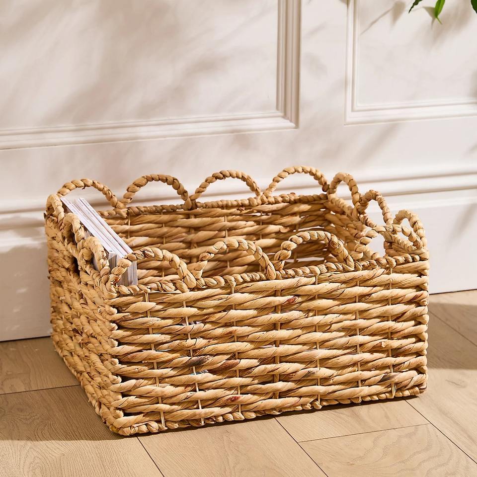 Size: W17,7 x H9,8 inch:Traditional woven water hyacinth basket with a wavy rim