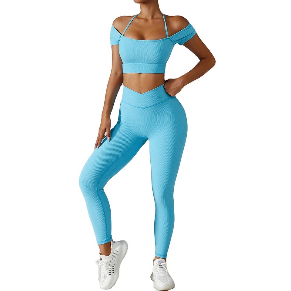 Training 2 Pcs Yoga Set for Women Short Sleeve Leggings Fitness Gym Clothing Breathable High Elastic Sportswear
