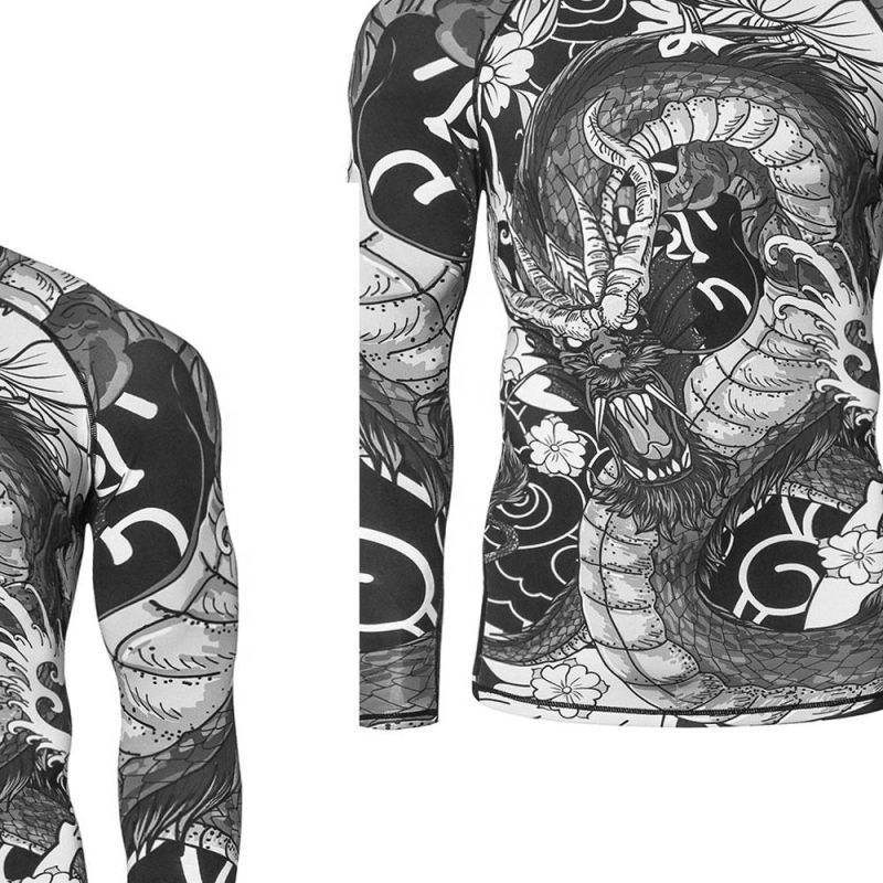 Training Men Rash Guard Long Sleeve Compression Polyester Quick Dry Custom Design Fitness BJJ Surfing Lightweight OEM Wholesale