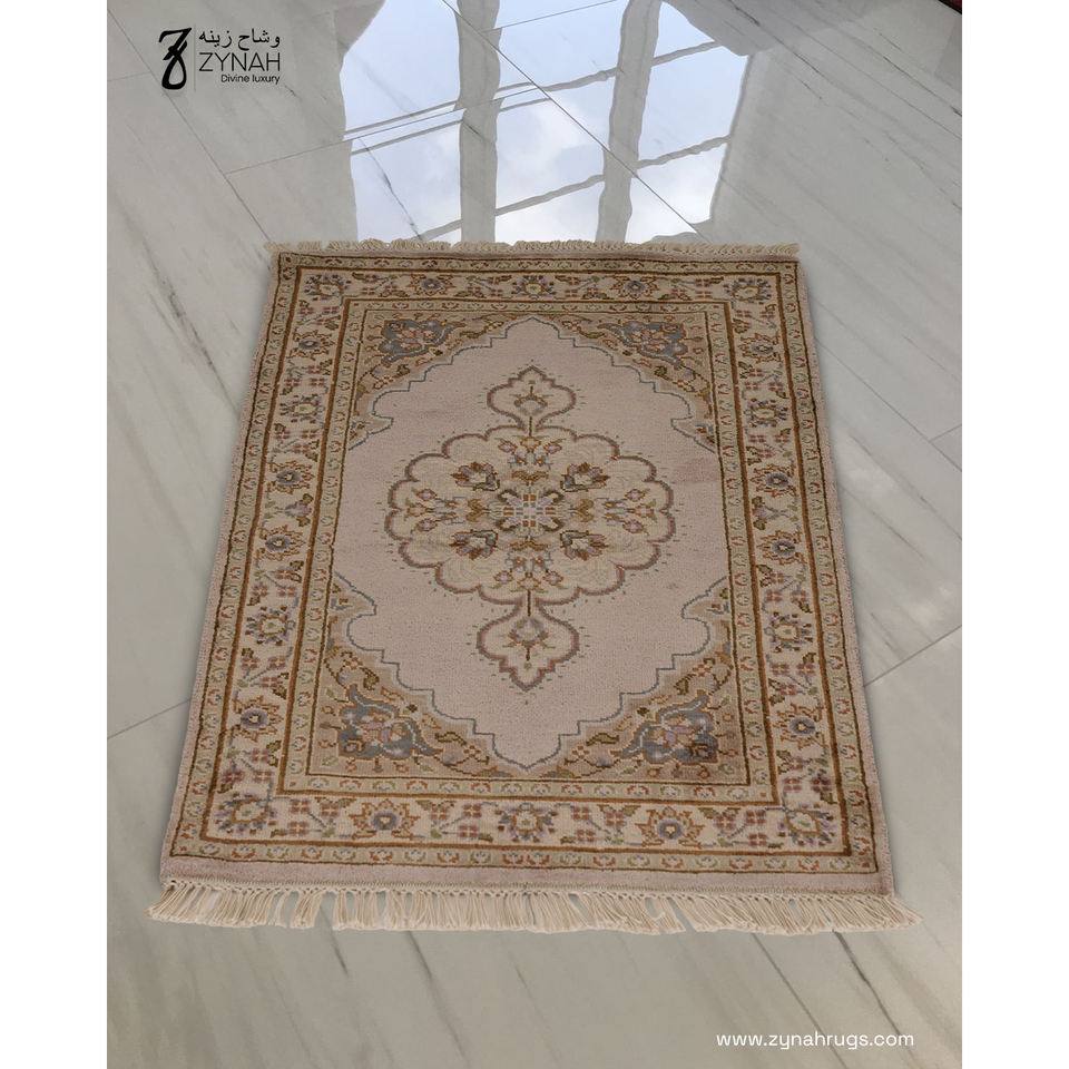 Tranquil Grace Silk Prayer Mat Washable Modern Persian Kilim Jacquard Tufted Technics Wool Polyester Foam Subtle Pattern 27x42