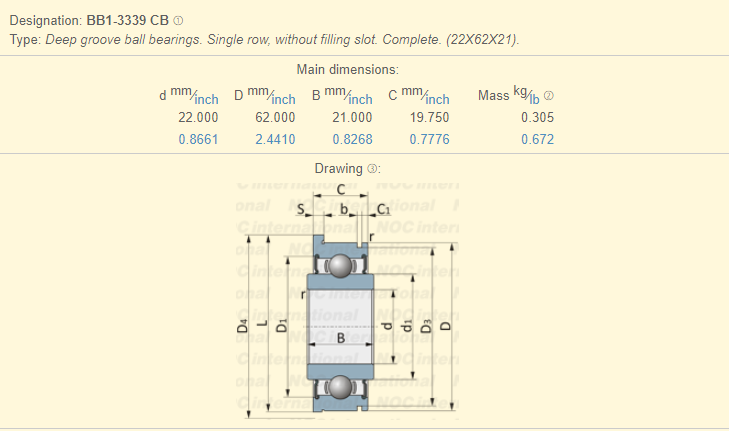 Bearing size type