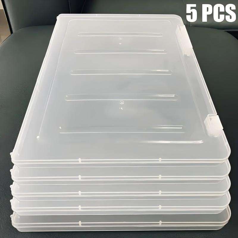 Transparent A4 Plastic File Storage Boxes 5 Units Double Buckle Lid Design Waterproof Dustproof Clear Visibility-for Desktop