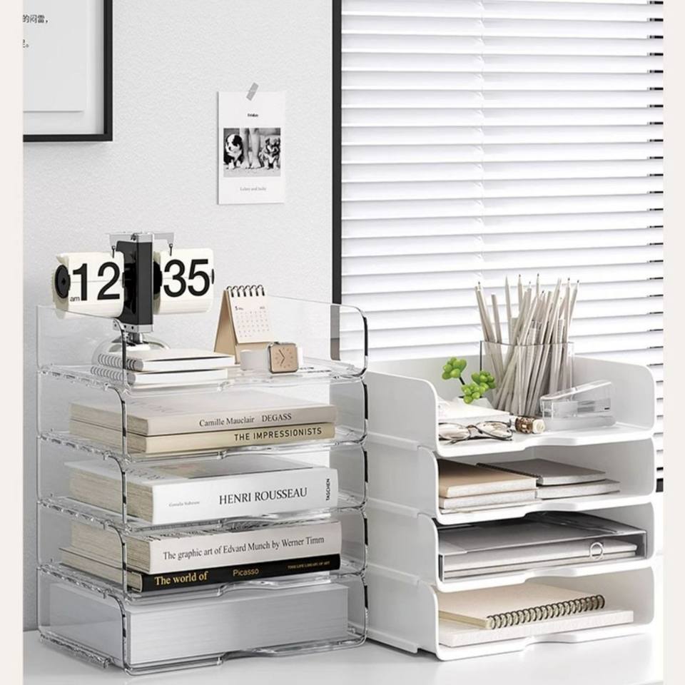 Transparent Acrylic File Organizer Rectangle Standing Type Large Capacity Layered Storage Box For Desk Study Drawer Style