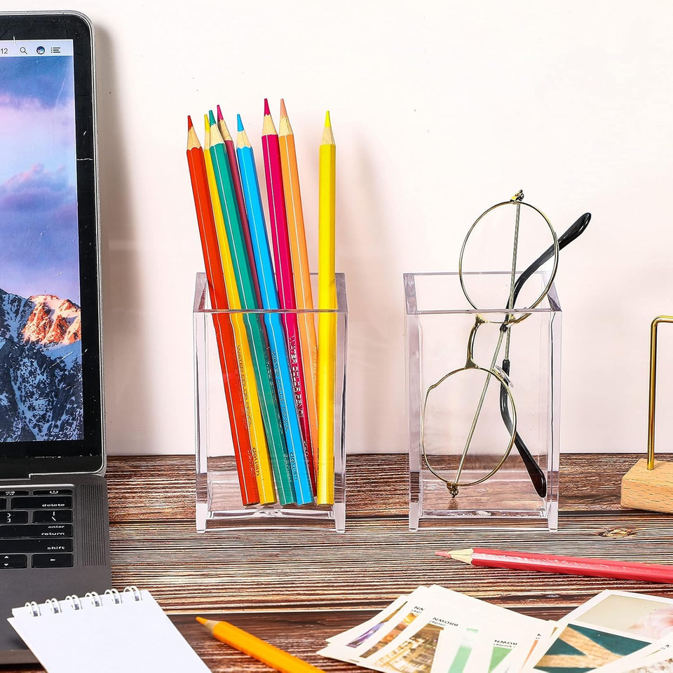 Transparent Acrylic Pen Holder Rack Organizer Nail Brush Holder Stand 2 Compartment Clear Makeup Brush Holder