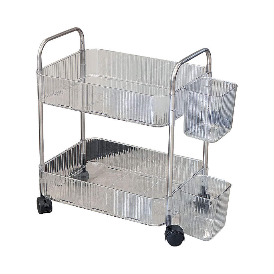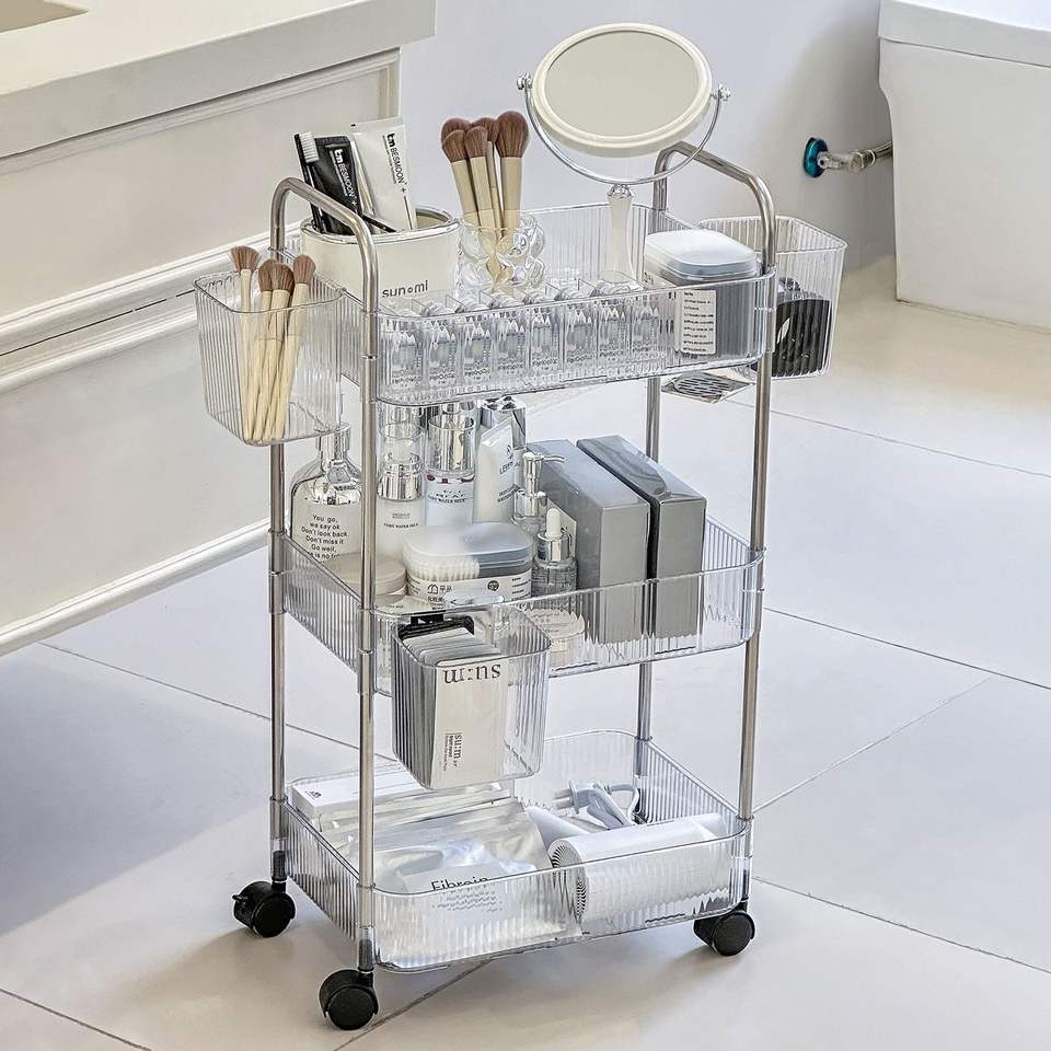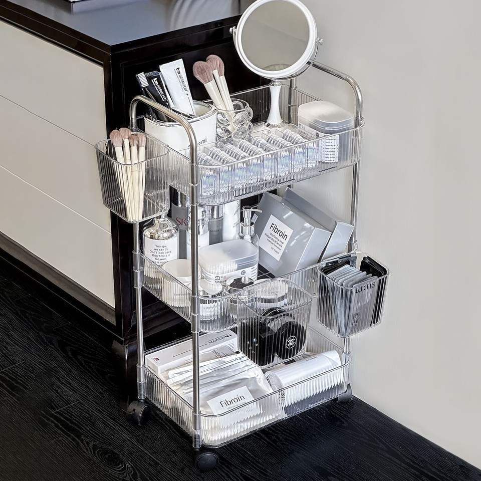 Transparent Acrylic Trolley Storage Rack 4 Layers With Mirror Cosmetic Organizer Bedroom Makeup Vanity Mobile Storage Cart