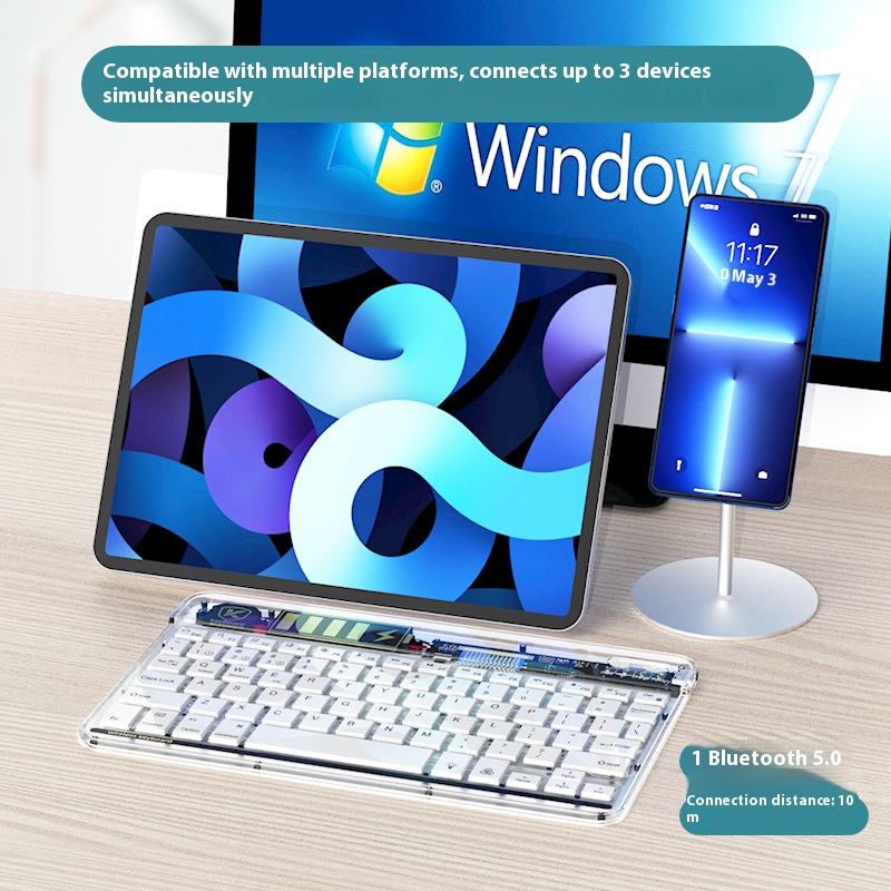 Transparent Blue Tooth Keyboard Mobile Phone Tablet Three Device Switch Wireless Charging Illuminated Keyboard