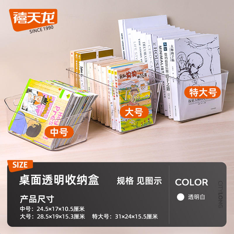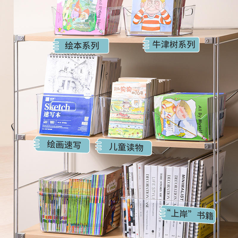 Transparent Book Storage Box Rectangle No Lid Desk Organizer For Kids And Students Storage Bins